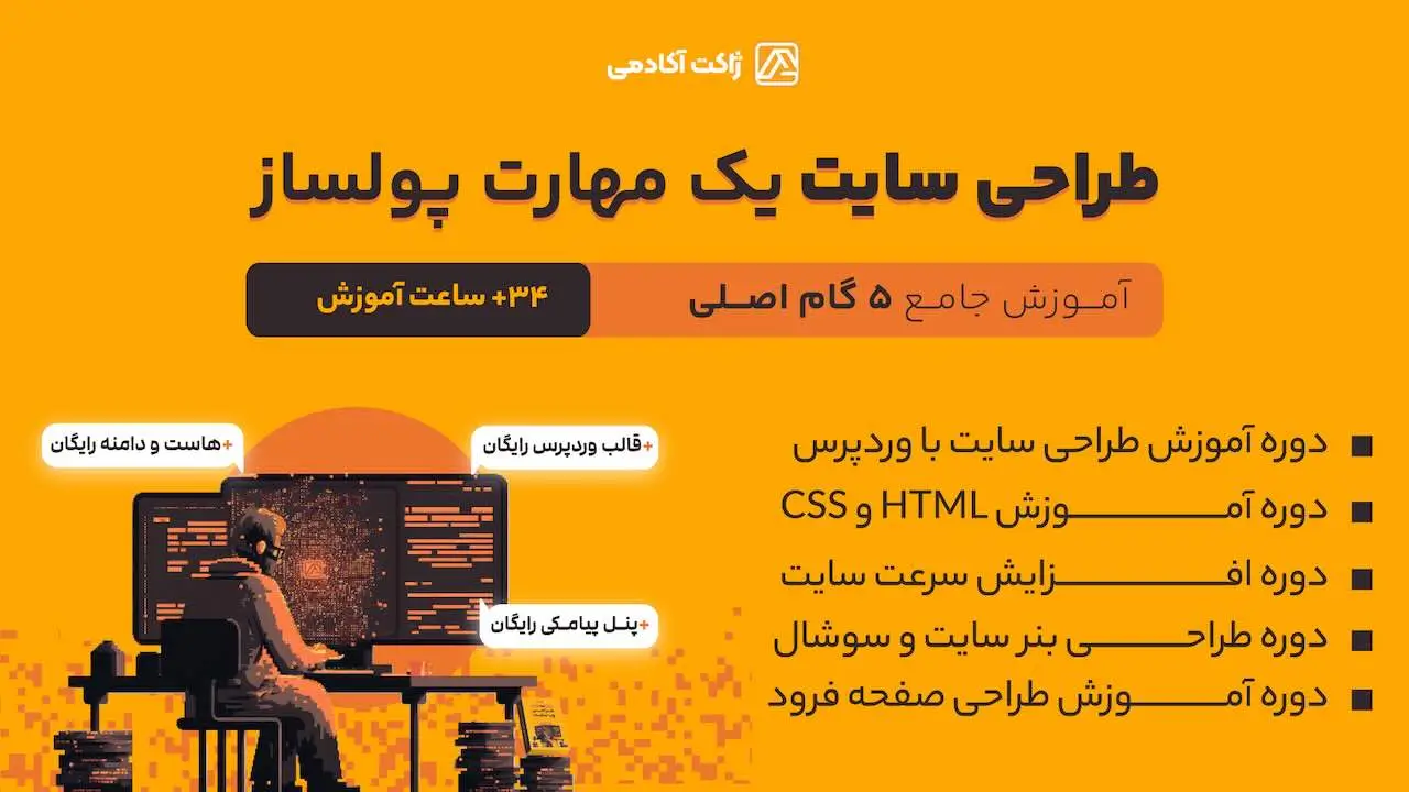 وقتشه که دست به کار شید! این دوره رو با تخفیف ویژه، همراه هاست، دامنه، قالب وردپرس و پنل پیامکی رایگان تهیه کنید. الان بهترین زمان برای شروع طراحی سایت و فتح دنیای وبِ!